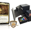 Ihr erhaltet eine Premium Deck Box und 100x Premium Kartenhüllen in matt inkl. 2x D20 Würfel als Lebenspunktezähler, 7x Token-Wüfelset, je 2x schwarze & weiße Würfel als Markenzähler (+1/+1 & -1/-1) sowie 3x D6 Würfel (glänzend, durchsichtig)