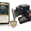 Ihr erhaltet eine Premium Deck Box und 100x Premium Kartenhüllen in matt inkl. 2x D20 Würfel als Lebenspunktezähler, 7x Token-Wüfelset, je 2x schwarze & weiße Würfel als Markenzähler (+1/+1 & -1/-1) sowie 3x D6 Würfel (glänzend, durchsichtig)