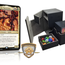 Ihr erhaltet eine Premium Deck Box und Kartenhüllen (100x Card Sleeves) in matt inkl. 2x D20 Würfel (Lebenspunktezähler)