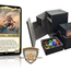 Ihr erhaltet eine Premium Deck Box und 100x Premium Kartenhüllen in matt inkl. 2x D20 Würfel als Lebenspunktezähler, 7x Token-Wüfelset, je 2x schwarze & weiße Würfel als Markenzähler (+1/+1 & -1/-1) sowie 3x D6 Würfel (glänzend, durchsichtig)