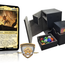 Ihr erhaltet eine Premium Deck Box und 100x Premium Kartenhüllen in matt inkl. 2x D20 Würfel als Lebenspunktezähler, 7x Token-Wüfelset, je 2x schwarze & weiße Würfel als Markenzähler (+1/+1 & -1/-1) sowie 3x D6 Würfel (glänzend, durchsichtig)