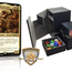 Ihr erhaltet eine Premium Deck Box und Kartenhüllen (100x Card Sleeves) in matt inkl. 2x D20 Würfel (Lebenspunktezähler)
