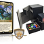 Ihr erhaltet eine Premium Deck Box und Kartenhüllen (100x Card Sleeves) in matt inkl. 2x D20 Würfel (Lebenspunktezähler)