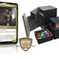 Ihr erhaltet eine Premium Deck Box und Kartenhüllen (100x Card Sleeves) in matt inkl. 2x D20 Würfel (Lebenspunktezähler)