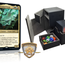Ihr erhaltet eine Premium Deck Box und 100x Premium Kartenhüllen in matt inkl. 2x D20 Würfel als Lebenspunktezähler, 7x Token-Wüfelset, je 2x schwarze & weiße Würfel als Markenzähler (+1/+1 & -1/-1) sowie 3x D6 Würfel (glänzend, durchsichtig)
