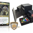 Ihr erhaltet eine Premium Deck Box und Kartenhüllen (100x Card Sleeves) in matt inkl. 2x D20 Würfel (Lebenspunktezähler)