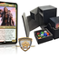 Ihr erhaltet eine Premium Deck Box und Kartenhüllen (100x Card Sleeves) in matt inkl. 2x D20 Würfel (Lebenspunktezähler)