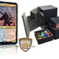 Ihr erhaltet eine Premium Deck Box und Kartenhüllen (100x Card Sleeves) in matt inkl. 2x D20 Würfel (Lebenspunktezähler)