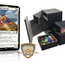Ihr erhaltet eine Premium Deck Box und 100x Premium Kartenhüllen in matt inkl. 2x D20 Würfel als Lebenspunktezähler, 7x Token-Wüfelset, je 2x schwarze & weiße Würfel als Markenzähler (+1/+1 & -1/-1) sowie 3x D6 Würfel (glänzend, durchsichtig)