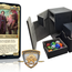 Ihr erhaltet eine Premium Deck Box und Kartenhüllen (100x Card Sleeves) in matt inkl. 2x D20 Würfel (Lebenspunktezähler)