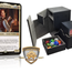 Ihr erhaltet eine Premium Deck Box und 100x Premium Kartenhüllen in matt inkl. 2x D20 Würfel als Lebenspunktezähler, 7x Token-Wüfelset, je 2x schwarze & weiße Würfel als Markenzähler (+1/+1 & -1/-1) sowie 3x D6 Würfel (glänzend, durchsichtig)
