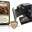 Ihr erhaltet eine Premium Deck Box und Kartenhüllen (100x Card Sleeves) in matt inkl. 2x D20 Würfel (Lebenspunktezähler)