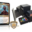 Ihr erhaltet eine Premium Deck Box und 100x Premium Kartenhüllen in matt inkl. 2x D20 Würfel als Lebenspunktezähler, 7x Token-Wüfelset, je 2x schwarze & weiße Würfel als Markenzähler (+1/+1 & -1/-1) sowie 3x D6 Würfel (glänzend, durchsichtig)