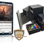 Ihr erhaltet eine Premium Deck Box und 100x Premium Kartenhüllen in matt inkl. 2x D20 Würfel als Lebenspunktezähler, 7x Token-Wüfelset, je 2x schwarze & weiße Würfel als Markenzähler (+1/+1 & -1/-1) sowie 3x D6 Würfel (glänzend, durchsichtig)