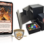 Ihr erhaltet eine Premium Deck Box und 100x Premium Kartenhüllen in matt inkl. 2x D20 Würfel als Lebenspunktezähler, 7x Token-Wüfelset, je 2x schwarze & weiße Würfel als Markenzähler (+1/+1 & -1/-1) sowie 3x D6 Würfel (glänzend, durchsichtig)